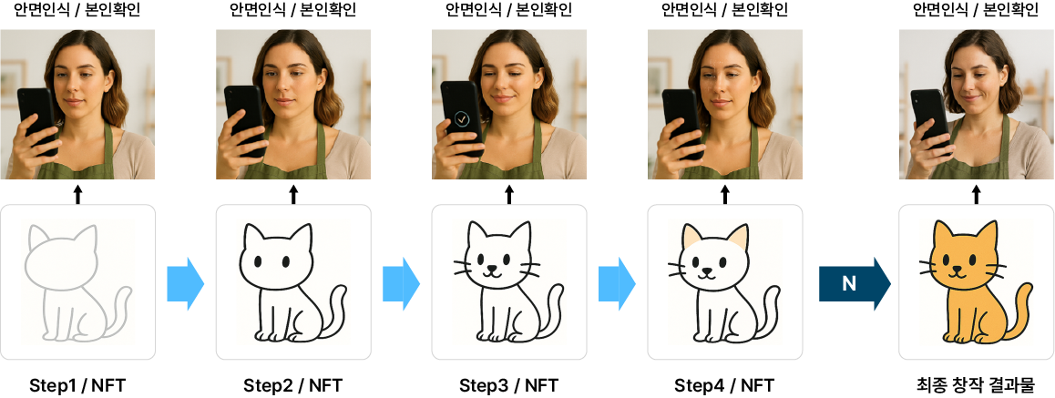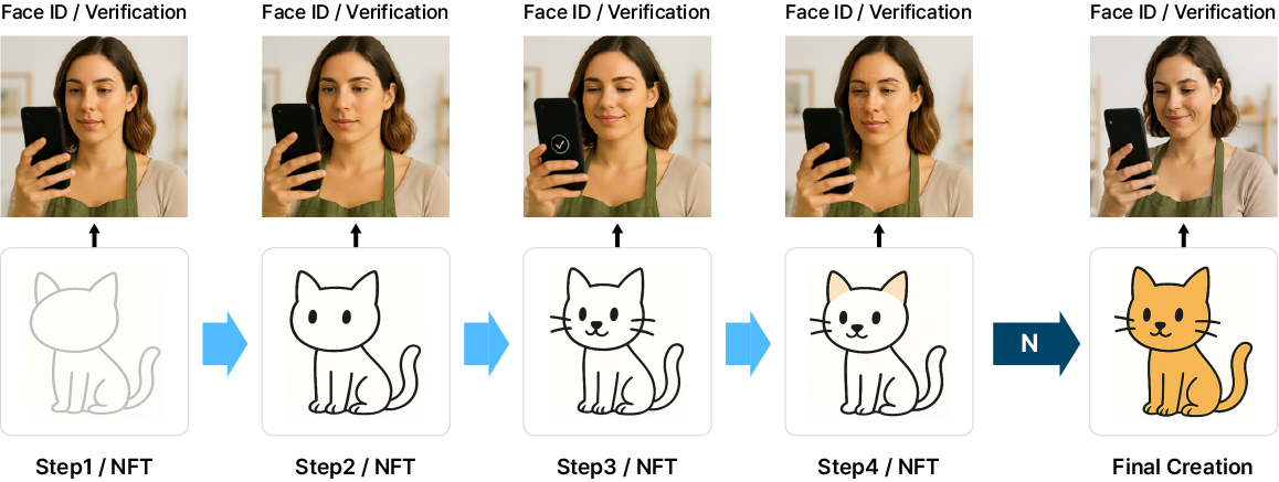 Convert the creative process into tamper-proof hash values to generate unique values.