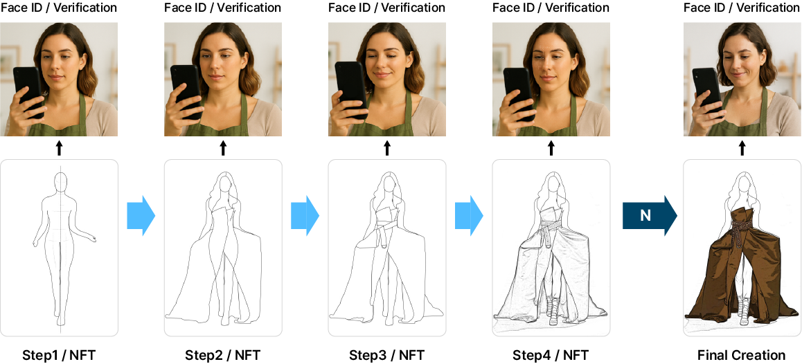 Convert the creative process into tamper-proof hash values to generate unique values.