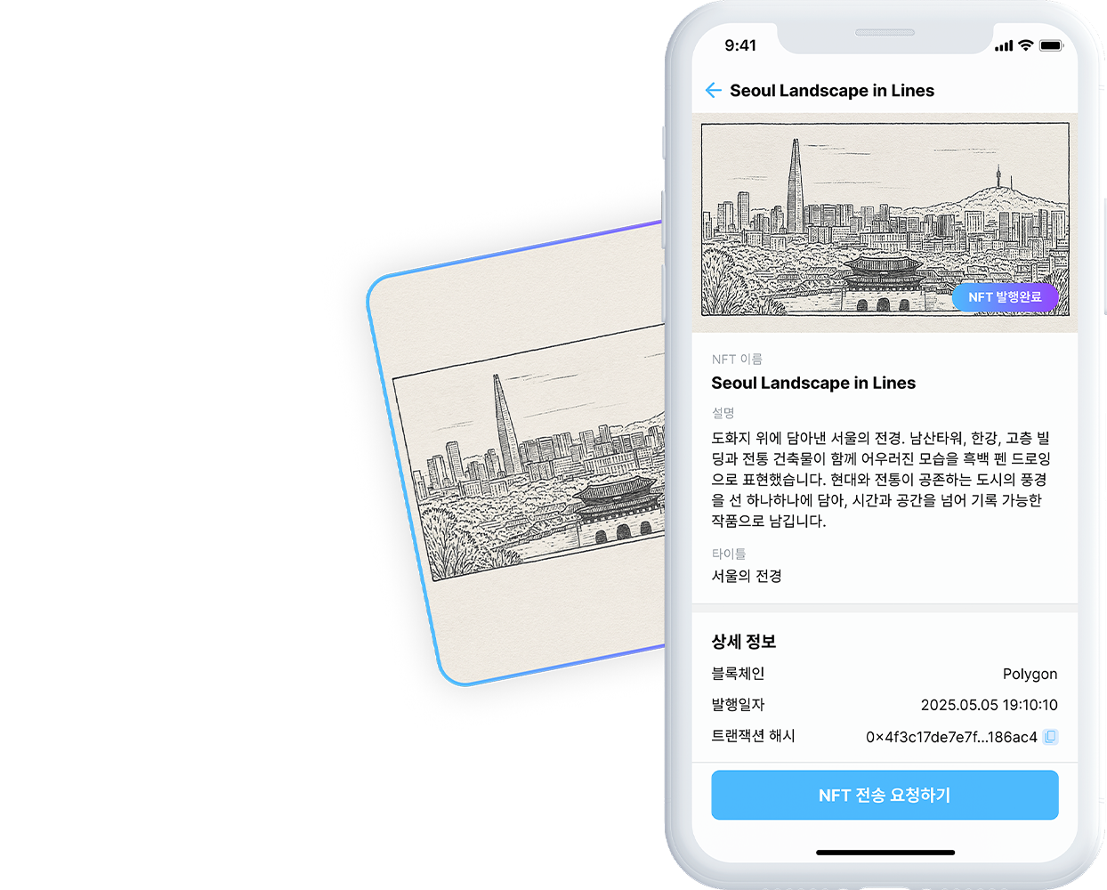 Through SHA-512 hash and NFTs, immutable digital proof is generated.