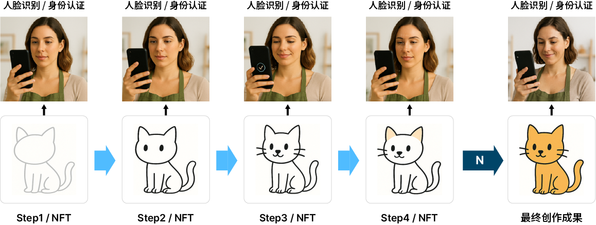 按顺序存储创作流程并赋予不可篡改的时间戳。